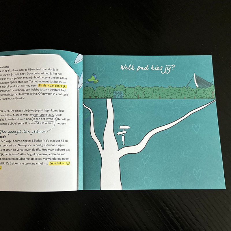 Ben jij klaar om anders naar het leven te kijken? Het boek, "Vertraag vandaag!" neemt je mee op een ontdekkingstocht vol herkenning, verwondering en kleine inzichten die grote impact kunnen hebben. In acht korte, vlot geschreven hoofdstukken lees je teksten vanuit het perspectief van een onbekende afzender, soms licht, soms prikkelend, soms even verwarrend. Maar altijd met een bedoeling, om jou aan het denken te zetten. Hoofdpersoon Lo leest deze teksten met jou mee. Lo reageert, reflecteert, kleurt en stelt precies die vragen die jij misschien zelf ook voelt opkomen. Zo ontstaat een soort gesprek op papier, eentje wat zowel herkenning als nieuwsgierigheid oproept. Na elk hoofdstuk is er ruimte voor jouw eigen aantekeningen, gedachten en of inzichten. Want het is niet zomaar een boek dat je uitleest, het is een boek waarbij je meereist. Met eenvoudige taal, ondersteunende illustraties en verrassende wendingen helpt het boek je om rust en richting te vinden in de hectiek van alledag. Een boek dat niet uitlegt, maar uitnodigt. Of je nu op zoek bent naar inspiratie, verdieping of de manier van kijken naar jezelf en de wereld, sowieso het begin van iets nieuws.